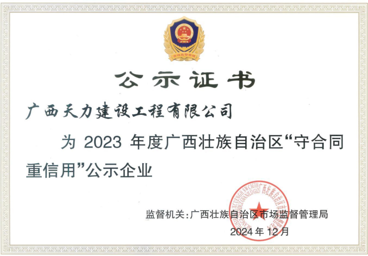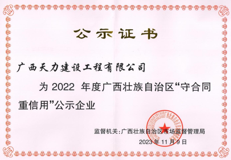 2023 年度广西壮族自治区“守合同 重信用”公示企业