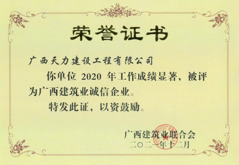 2020年度广西建筑业诚信企业