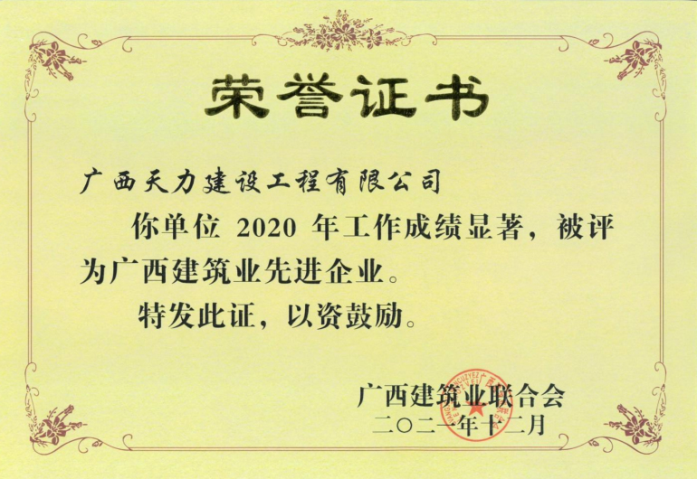 2020年度广西建筑业先进企业