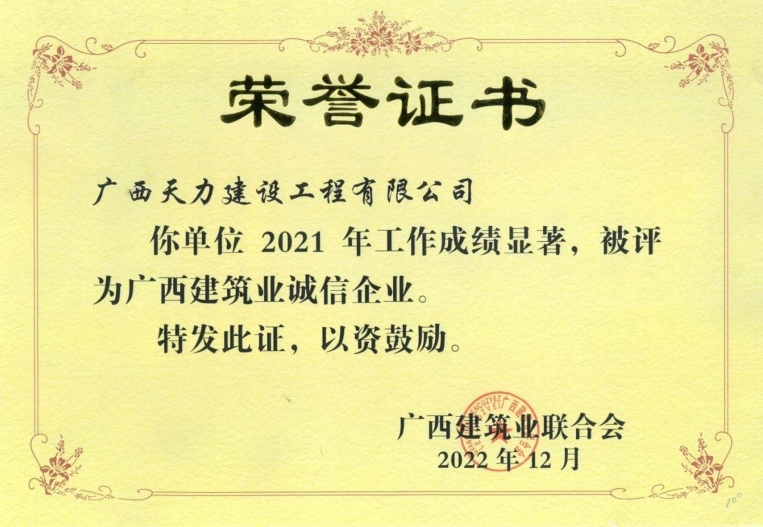 2021年度广西建筑业诚信企业