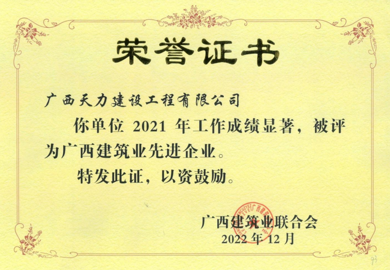 2021年度广西建筑业先进企业